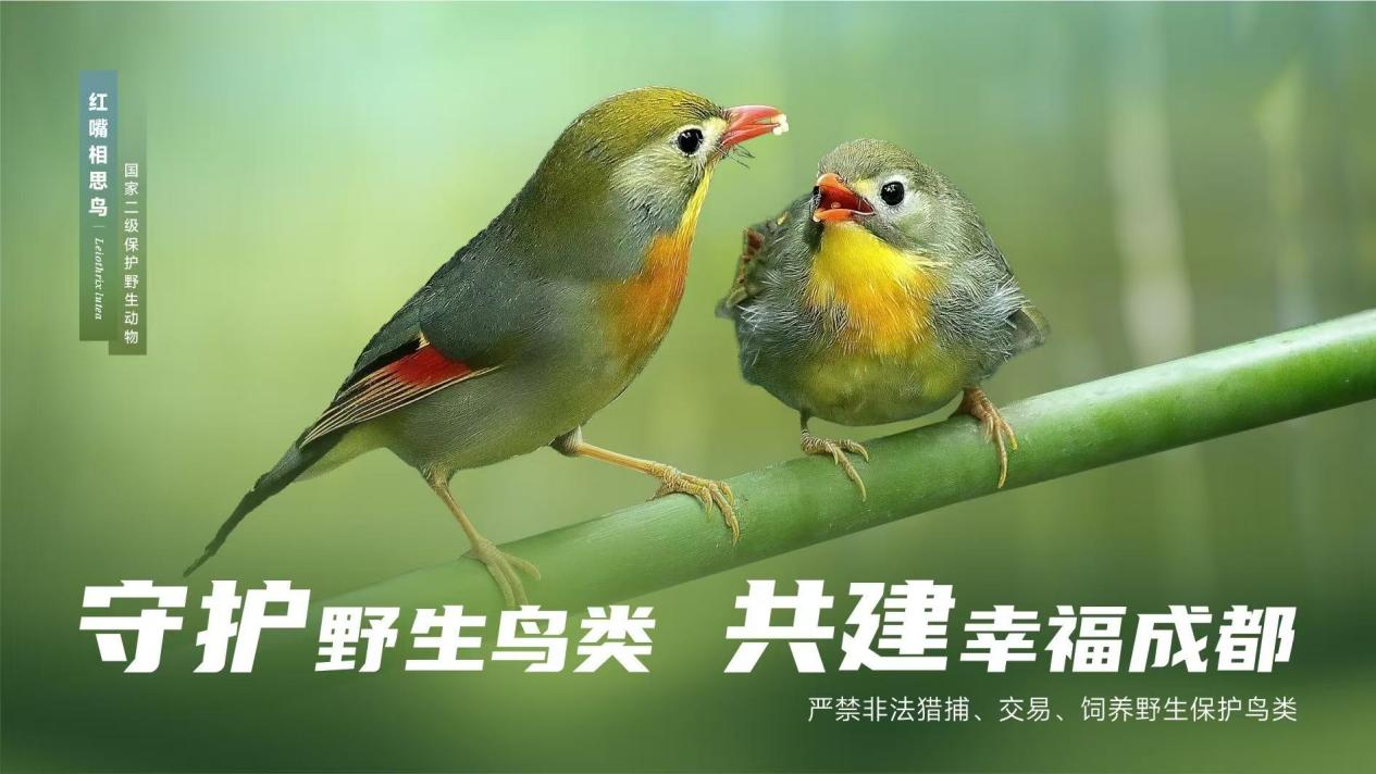 近日,细心的市民会发现,在成都市各公益广告宣传点位,张贴上了“守护野生鸟类 共建幸福成都”保护鸟类系列主题海报。1月22日,记者从成都市公园城市局获悉,这一主题海报覆盖全市100多个户外LED大屏,并通过宣传海报进校园、进社区等形式,向广大市民普及鸟类保护知识。